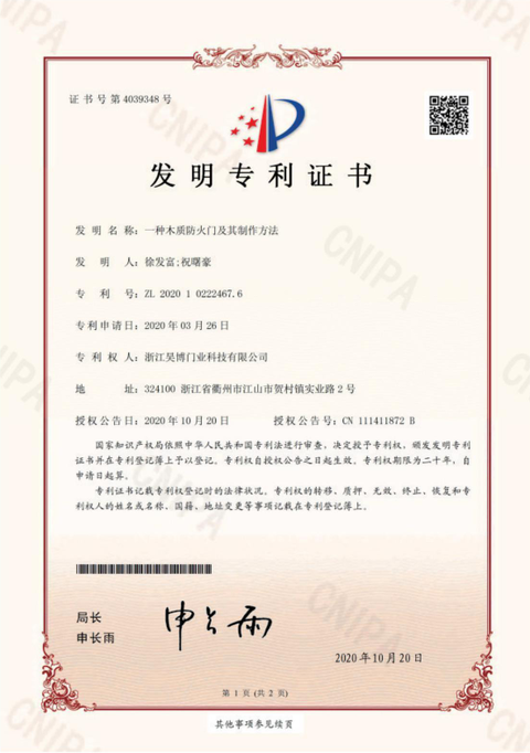 公司一直以來(lái)嚴(yán)格執(zhí)行ISO9001質(zhì)量體系和ISO14001環(huán)境管理體系標(biāo)準(zhǔn),建立了完備的科研、開(kāi)發(fā)、生產(chǎn)、銷售服務(wù)體系。公司是浙江省門業(yè)協(xié)會(huì)會(huì)員單位,江山門業(yè)協(xié)會(huì)理事單位,中國(guó)木材與木制品流通協(xié)會(huì)會(huì)員單位,江山市消防協(xié)會(huì)副會(huì)長(zhǎng)單位。